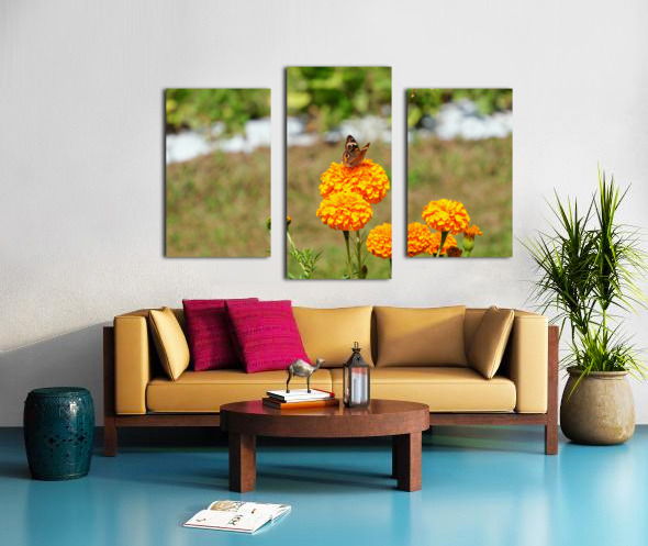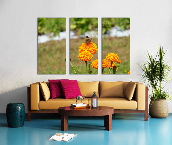 Butterflies Collection. Captured in a quiet moment, this image invites you into a sun-drenched field where the humble marigold becomes a stage for a lone butterfly’s delicate pause. The lush orange-gold hues stand in brilliant contrast against the blurred green backdrop, creating an image that is both vibrant and peaceful. The butterfly’s wings, patterned with earthy elegance, mirror the intricate textures of the marigold petals, both fleeting and eternal in their natural rhythm. As wall art, this piece evokes the fleeting nature of joy and the quiet importance of stillness. It’s a daily reminder to slow down, observe, and appreciate the micro-beauties of life. Perfect for a meditation space, hallway, or garden room, it carries warmth and poetic softness into any environment.