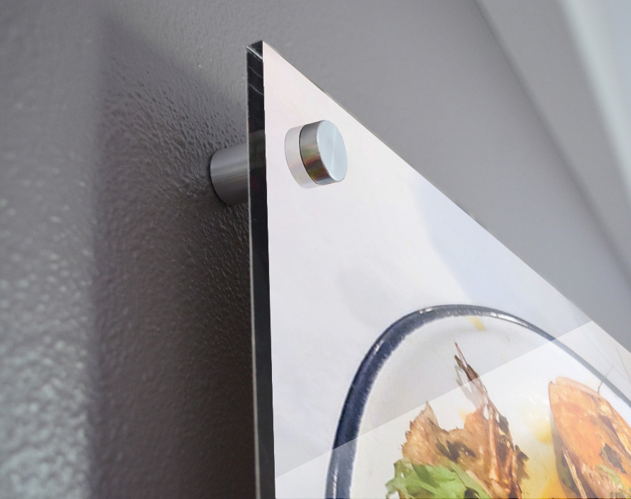 Impression sur acrylique avec entretoises ( cylindres métalliques )