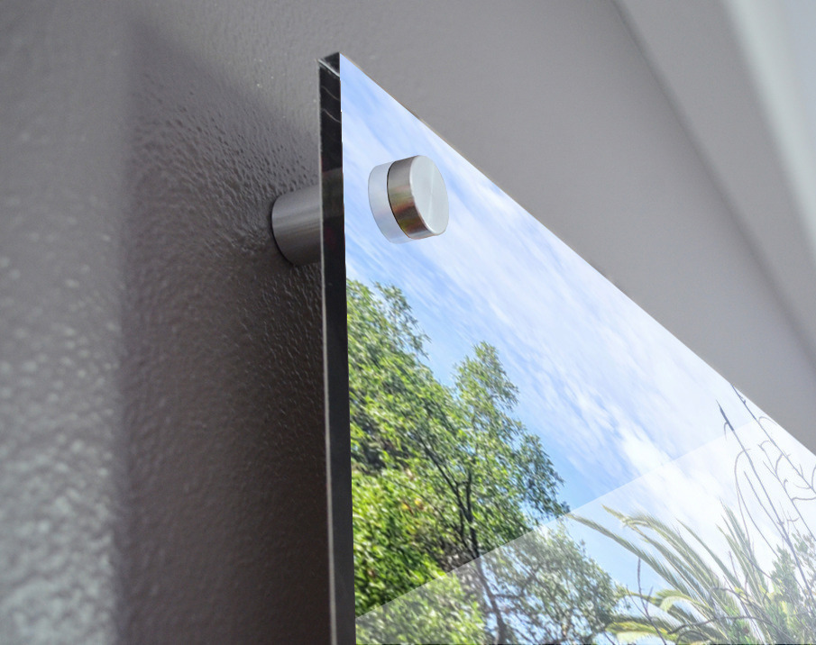 Impression sur acrylique avec entretoises ( cylindres métalliques )