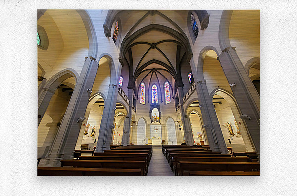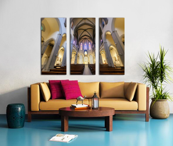 This image channels the divine interplay of space and light found within a centuries-old cathedral. Vertical columns suggest unwavering faith, while beams of colored light from the stained glass windows streak across the interior like threads of grace. As a wall piece, it speaks to both strength and stillness—perfect for reflective spaces, meditation rooms, or creative studios that benefit from a touch of historical soul and architectural drama. It is both a grounding and uplifting presence in any space.