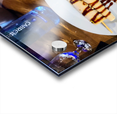 Impression sur acrylique avec entretoises ( cylindres métalliques )