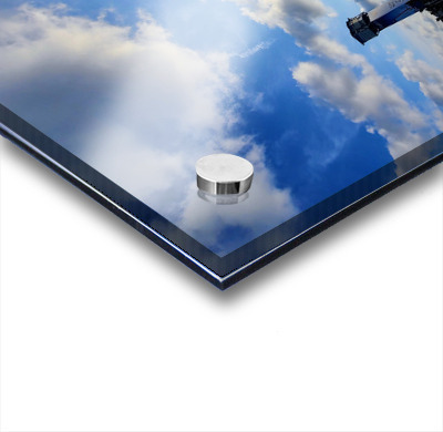 Impression sur acrylique avec entretoises ( cylindres métalliques )