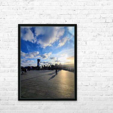 Barcelona Travel Collection. This was a walk along the beach opposite the water as the sun was setting. This striking scene captures the brief moment just before sunset, where the bustling energy of a city square softens under golden hues. Silhouetted figures stretch across glistening pavement, their shadows long and poetic, stretching toward the viewer. Above, a dynamic sky of cotton clouds rolls gently through fading blue, amplifying the stillness below. As a piece of wall art, Where Light Finds the Silence invites the viewer to pause to reflect on the quiet that exists even in crowded spaces. It's a reminder that peace isn't always about solitude it can bloom right in the middle of movement, between footfalls, beneath a vast sky. Ideal for living rooms, libraries, or open office areas where stillness meets creativity.