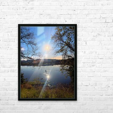 Morning sunrise during a jog in La Crosse. Wisconsin Collection-A captivating capture of the sun beaming over a peaceful wetland landscape, casting a golden glow across the sky and its reflection on the still water below.