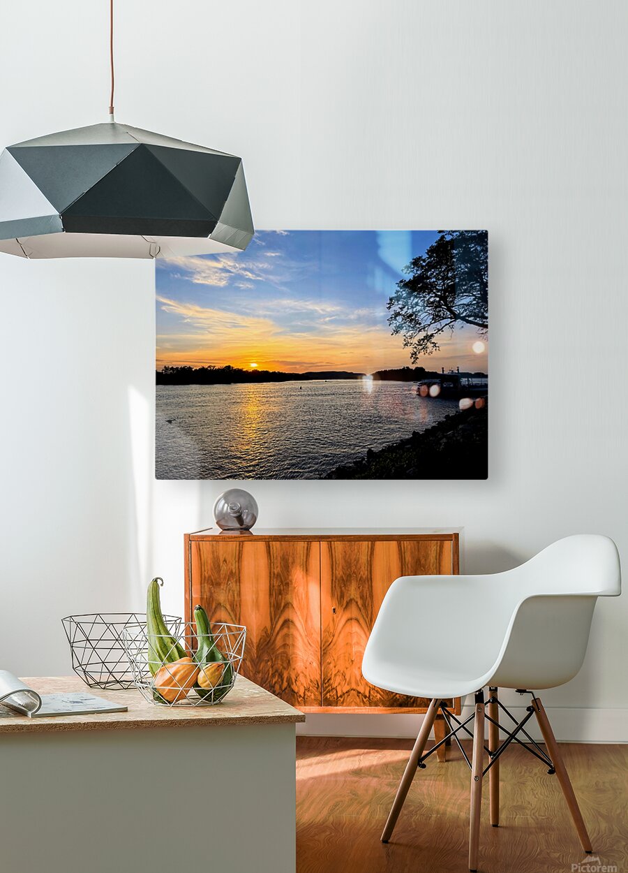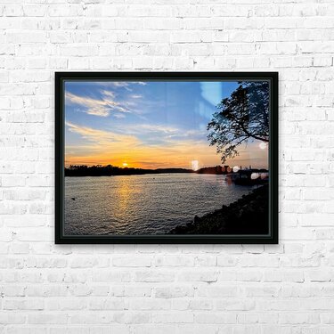 Pour obtenir "Sunset Port – La Crosse Horizon" dans une impression encadrée.