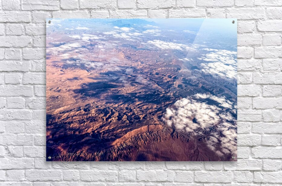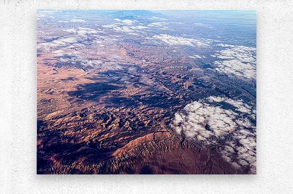 This breathtaking aerial shot captures the Colorado River snaking through the rugged terrain of the American Southwest, bathed in warm desert hues and cloaked by patches of drifting cloud shadows. Shot from high above, the image reveals the earth's raw texture — etched canyons, ridgelines, and undulating topography — like veins pumping life through an ancient body. As wall art, “Veins of the Earth” is more than just a landscape. It’s a meditation on scale, movement, and the timeless power of nature. The contrast between sky and earth, fluid and solid, light and shadow invites contemplation and calm. Ideal for those who crave connection to the natural world or want to bring a grounding, organic presence into modern spaces.