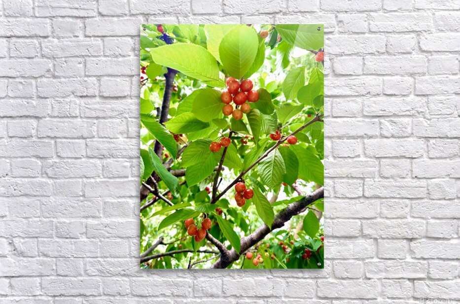 Tucked among fresh leaves, a crown of cherries matures in stately elegance. The natural symmetry and balance of the clusters create a regal composition—one that honors the quiet power of growth and natural royalty bestowed upon every fruiting tree. This artwork brings a touch of poetic symbolism into any space. It speaks of grace in the overlooked, of nature’s quiet majesty. Perfect for spaces where mindfulness, femininity, or botanical themes are central.