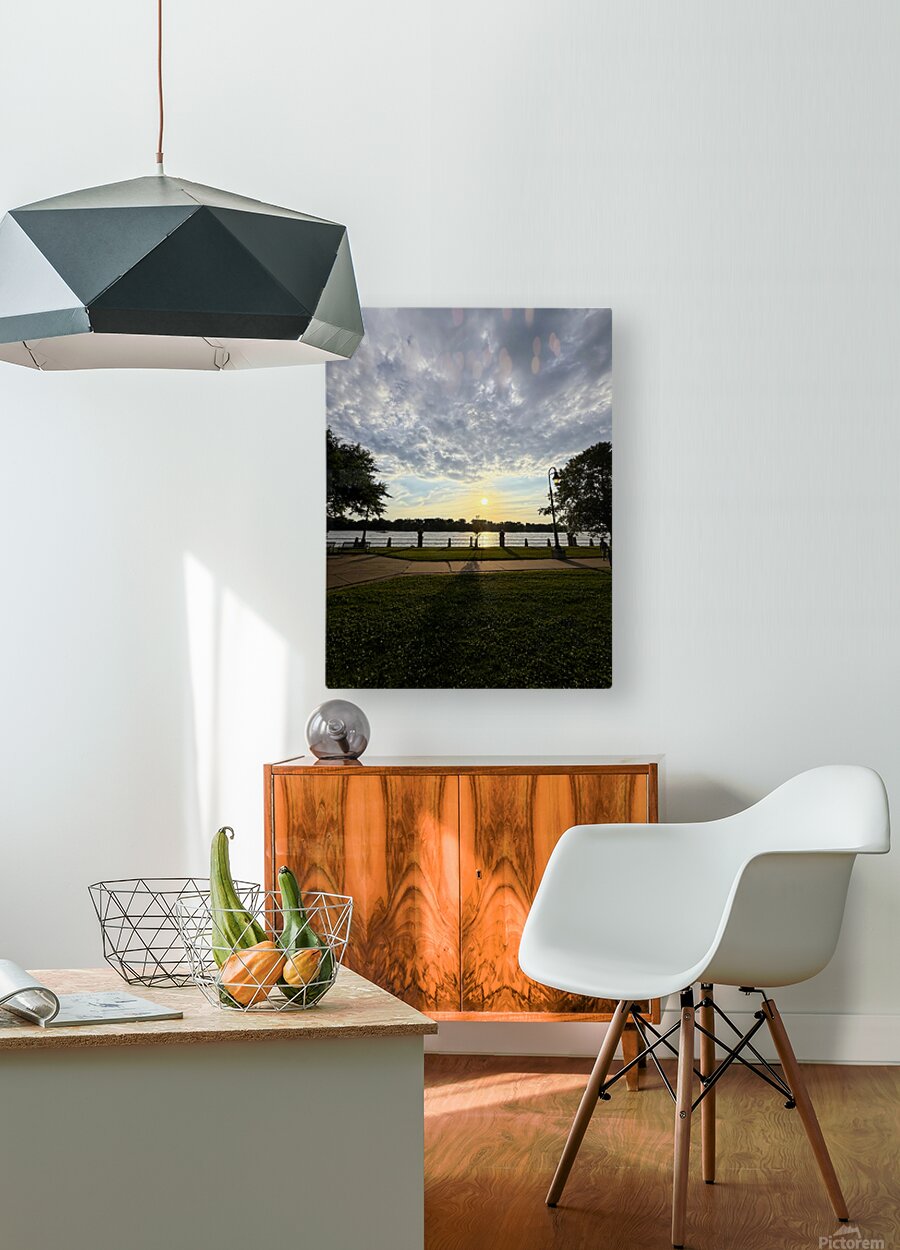 Captured just as the sun begins to dip below the horizon, this riverside view pairs a glowing sky with the subtle presence of humanity in motion. The delicate interplay of shadows and golden light creates a mood that is both nostalgic and peaceful. There’s something timeless in this pause between day and night, a pocket of stillness often missed. As wall art, this piece invites contemplation. It’s a visual breath, a reminder to slow down, observe the fleeting beauty of a day’s final light, and appreciate quiet spaces amid the bustle. Its long shadows and delicate lighting soften any room, offering a grounding, centering presence in workspaces, reading nooks, or transitional spaces like hallways.