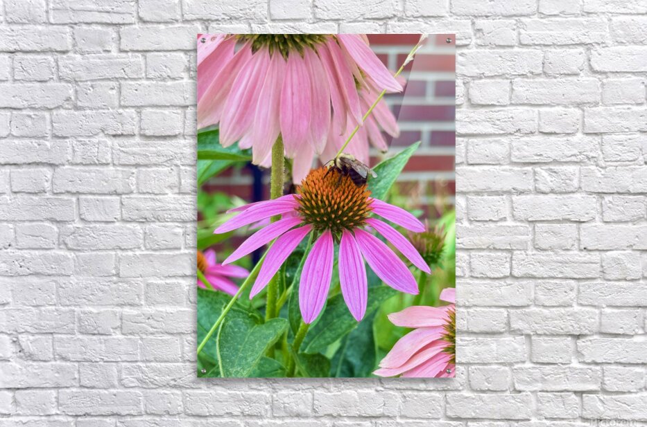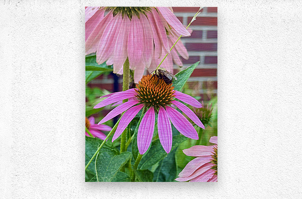 A more intimate, side-angle view of a solitary bee perched delicately on the crown of a radiant coneflower, this photo captures the moment before movement , a breath held in the garden. As wall art, Floral Landing draws the viewer into a peaceful microcosm. The image evokes feelings of serenity, subtle wonder, and natural curiosity. The emphasis on the single bee’s gentle contact with the flower becomes a metaphor for mindfulness and the quiet, meaningful work we do in our daily lives.