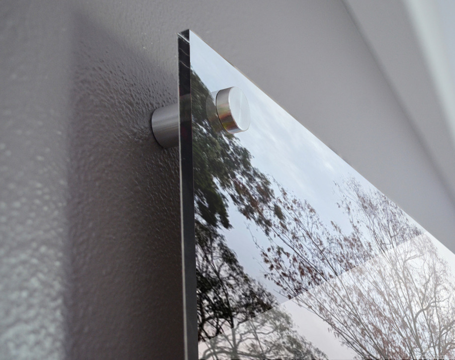 Impression sur acrylique avec entretoises ( cylindres métalliques )
