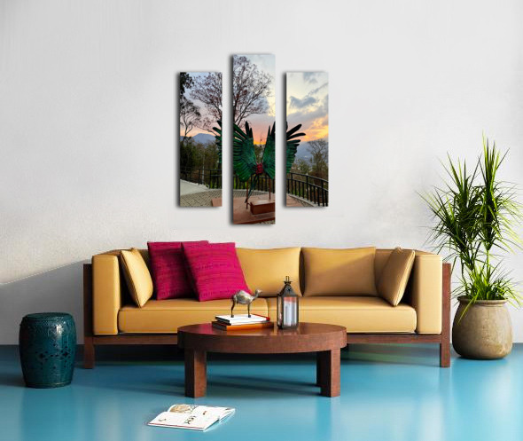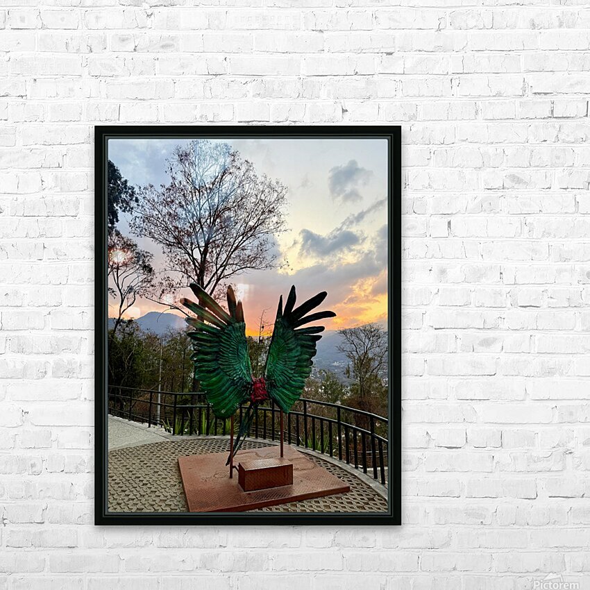Impression pleine et montage avec un cadre flottant à l’arrière de 3/4 pouce d’épaisseur avec fil de suspension.