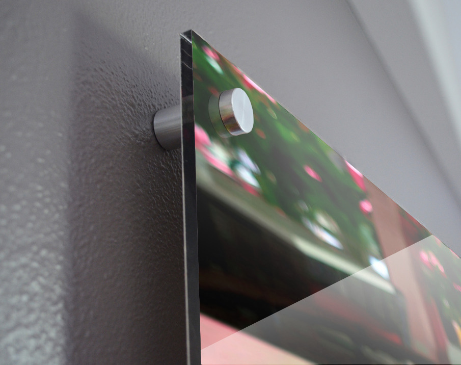 Impression sur acrylique avec entretoises ( cylindres métalliques )