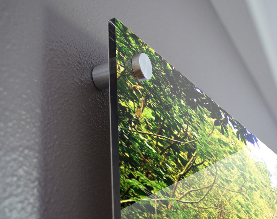 Impression sur acrylique avec entretoises ( cylindres métalliques )