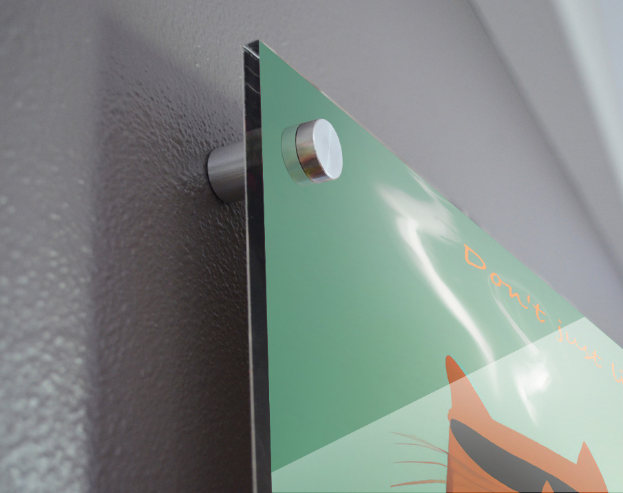 Impression sur acrylique avec entretoises ( cylindres métalliques )