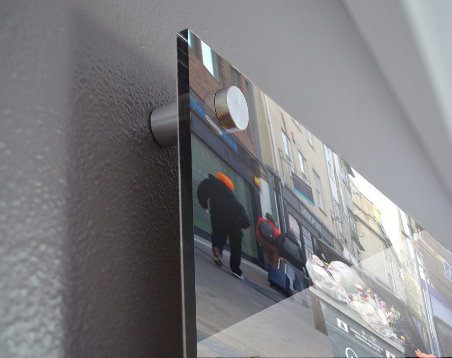 Impression sur acrylique avec entretoises ( cylindres métalliques )
