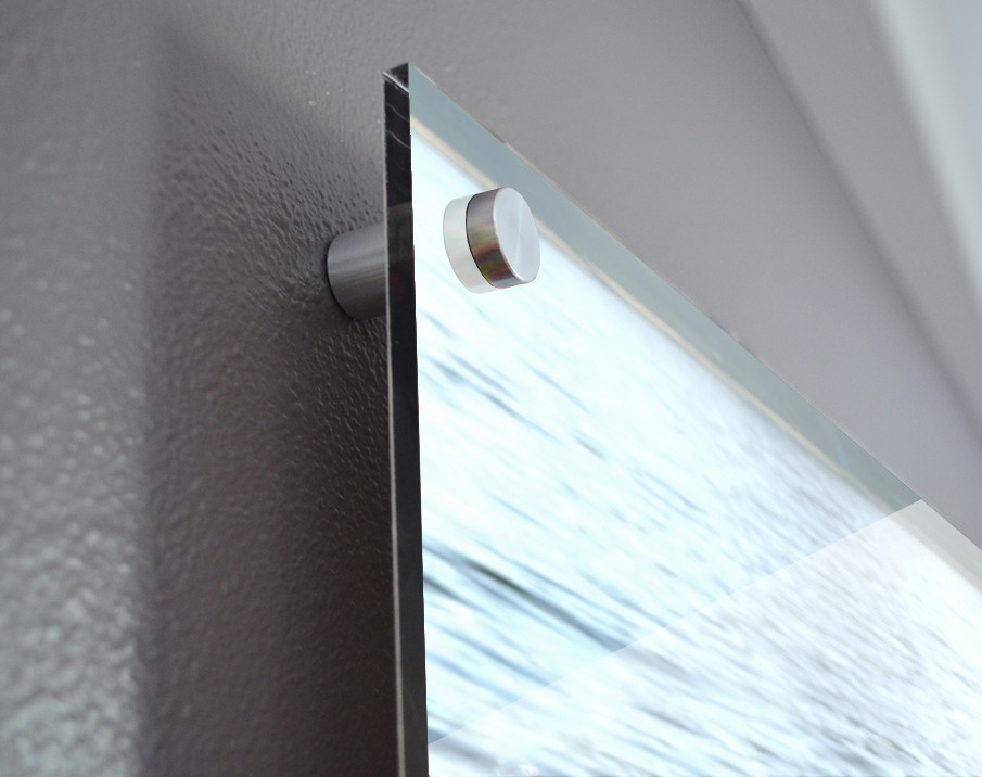 Impression sur acrylique avec entretoises ( cylindres métalliques )