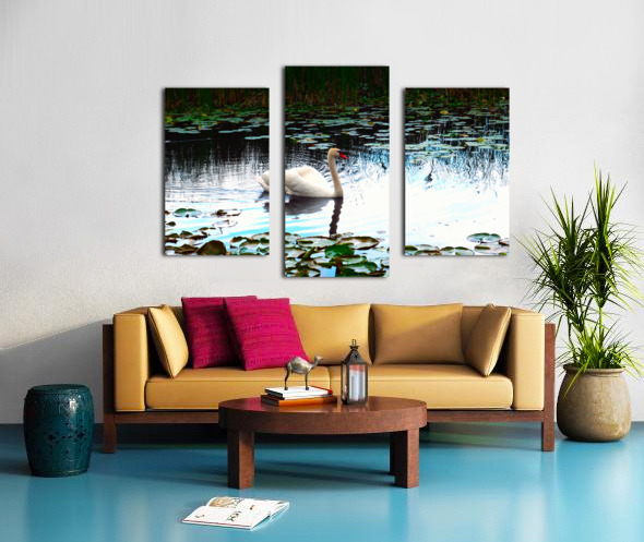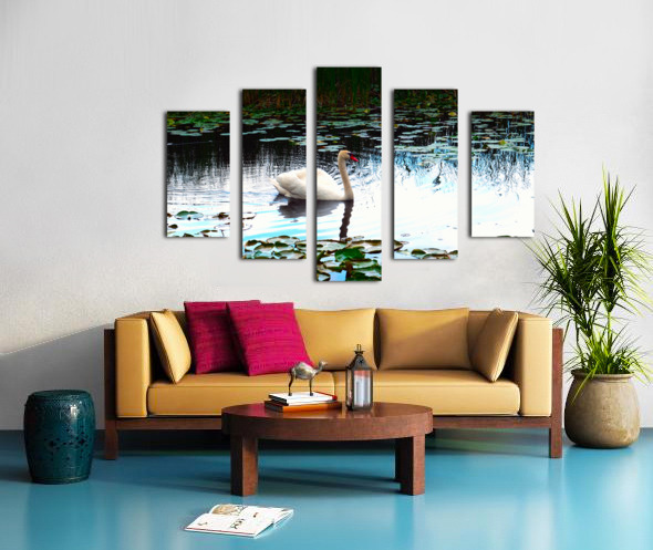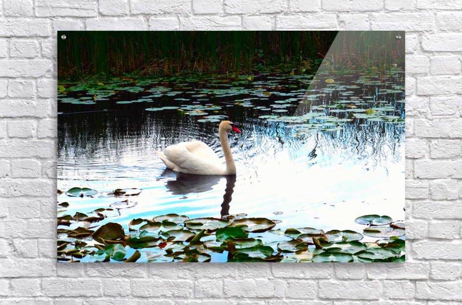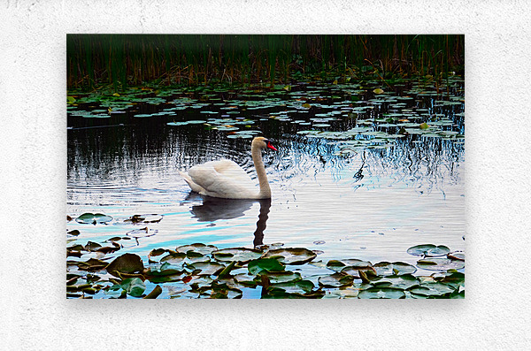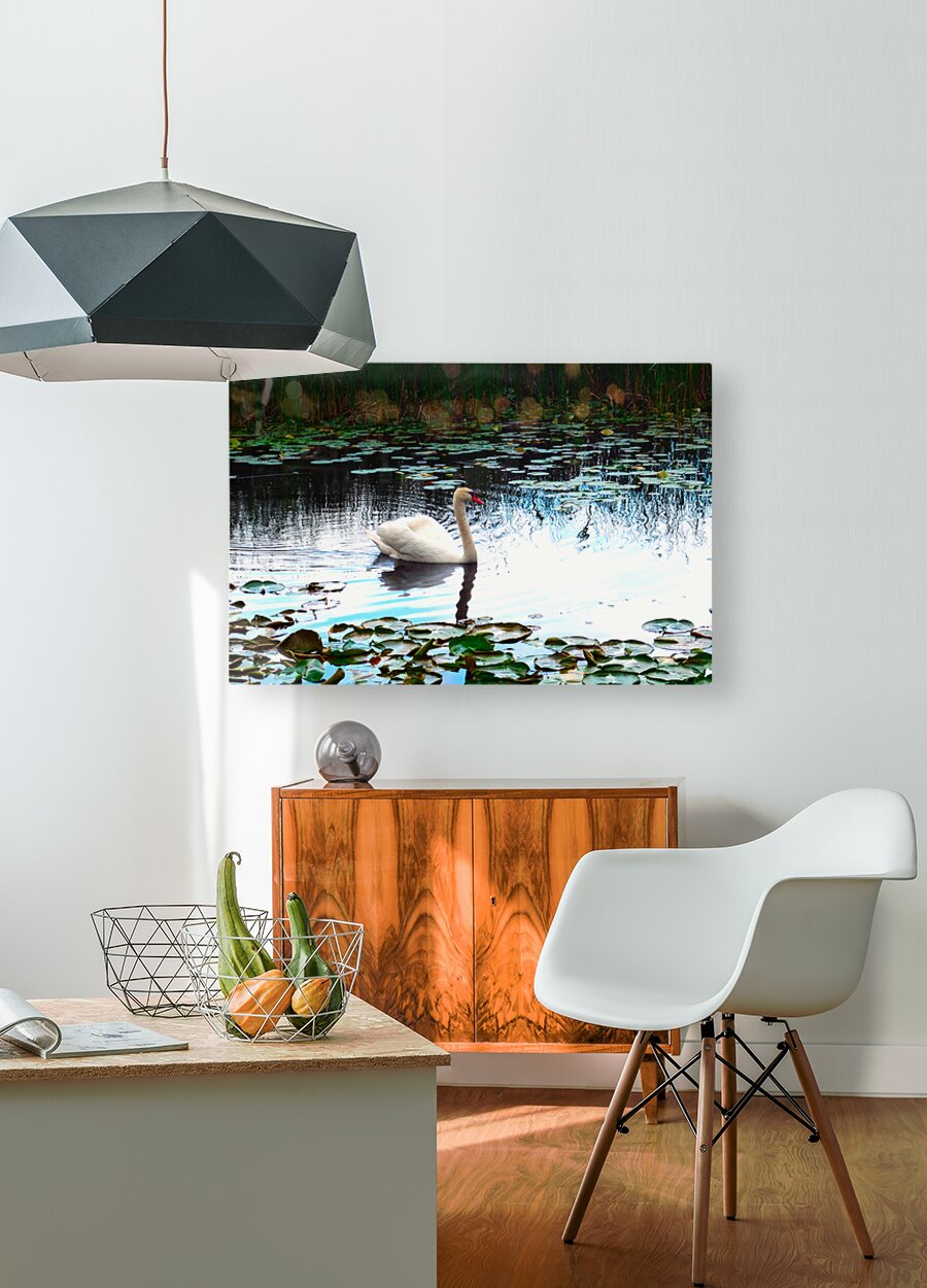 The swan’s white plumage stands out in contrast against the cool blues and greens of the pond, surrounded by lily pads that frame the scene with natural elegance. In Silent Glide, the viewer is drawn not just to the swan, but to the concept of flowing through life gracefully. Ideal for minimalist spaces or Zen-inspired interiors, this piece radiates gentle energy and contemplative balance.