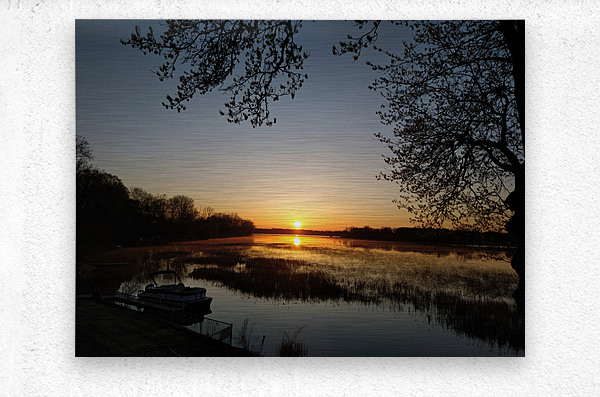 Waking up to a morning sunrise on Long Lake in Portage, Michigan. This image offers a breathtaking look into a Midwestern morning in its purest form. This photograph presents the perfect alignment of nature's symmetry, the rising sun and its shimmering twin on the still lake surface. As wall art, it brings warmth and organic harmony to living rooms, hallways, or office lobbies. The glow of the scene evokes hope and renewal, making it an ideal piece for transitional or reflective spaces where beginnings and possibilities are celebrated.
