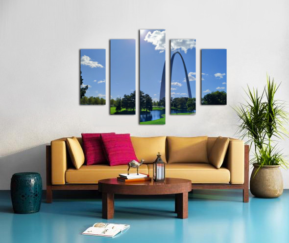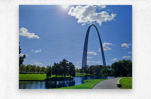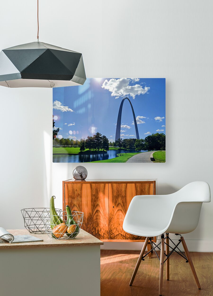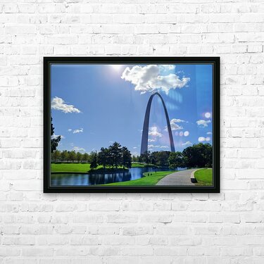 Driving to Dallas from the Midwest along Route 66, one of the stops worth pulling over for is the Gateway Arch. Gateway Arch Collection. This captivating image frames the Gateway Arch beneath a cloud resting atop its apex, creating the illusion of a “crown.” Perfect for sparking conversation, this piece blends whimsy with architectural marvel. As wall art, it brings optimism and airiness to any room. This scene is ideal for an entryway or hallway, symbolizing welcome and adventure.