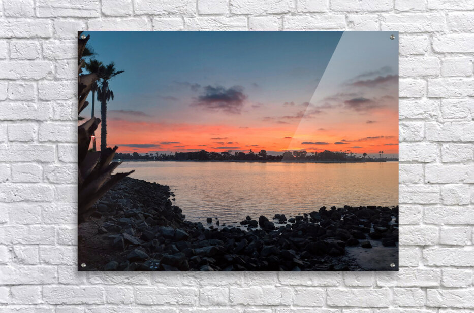San Diego Sunset Collection. Taken by Tidal Restaurant at Paradise Point Resort & Spa. This evocative photograph captures a mesmerizing moment just after sunset along the peaceful waters of San Diego’s Tidal area.The silhouetted palms stand sentry against a sky ignited in warm orange and pink hues, melting into soft purples and deepening blues. The gently scattered clouds add texture and mood, while the glassy water reflects the day’s final light with quiet reverence. Perfectly timed and framed, this image doesn’t just document a place, it invites the viewer into a sensory experience of warmth, quietude, and wonder. This transforms any space into a haven of calm and contemplation. Its natural symmetry and color gradients offer more than visual beauty, they evoke emotional grounding. This piece speaks to moments of pause in life, the gentle transitions we all move through, and the sense of awe that only nature’s subtleties can inspire. It reminds the viewer that every end of day is also a beginning of reflection, and that even in silence, the world speaks in color.
