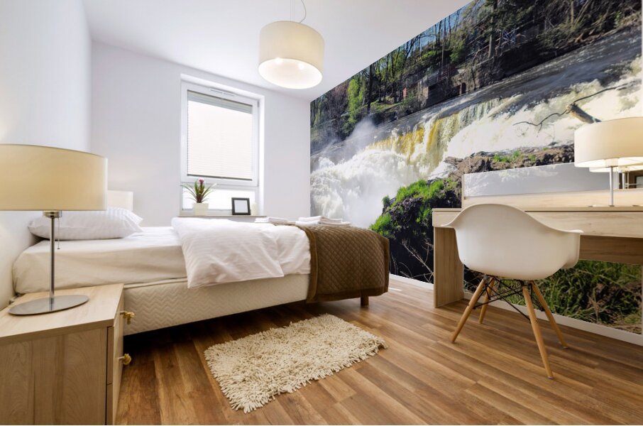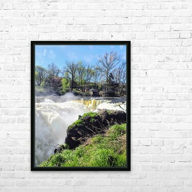 Paterson Great Falls Historic National Park New Jersey Collection. Here, the land inhales and exhales through water and light. Trees lean forward in soft communion with the cascade. The energy is felt more than heard a deep resonance from within the rock’s ancient ribs. This piece brings stillness in motion to any space. Ideal for rooms that seek an infusion of natural rhythm, it calms the overstimulated mind while inspiring the active soul. It's not just an image, it’s an ecosystem of emotion, captured in a single breath.