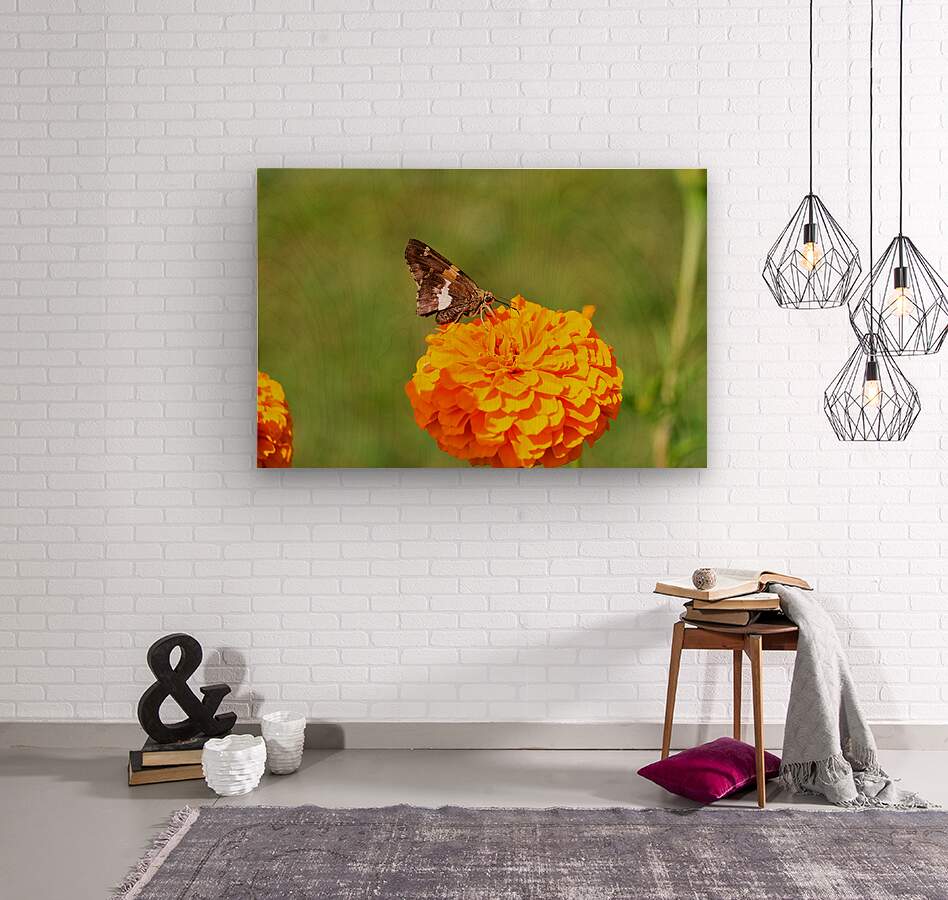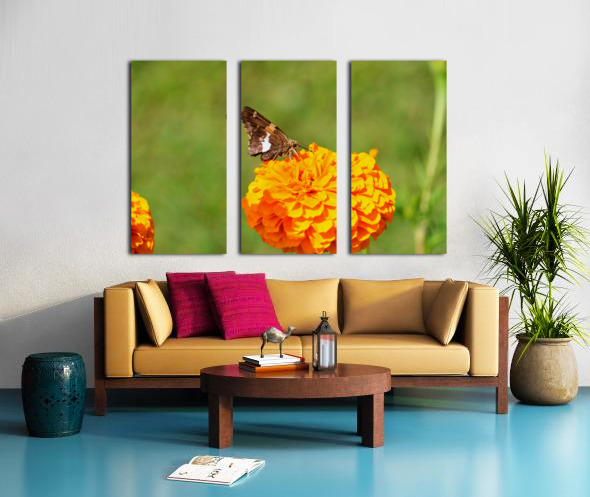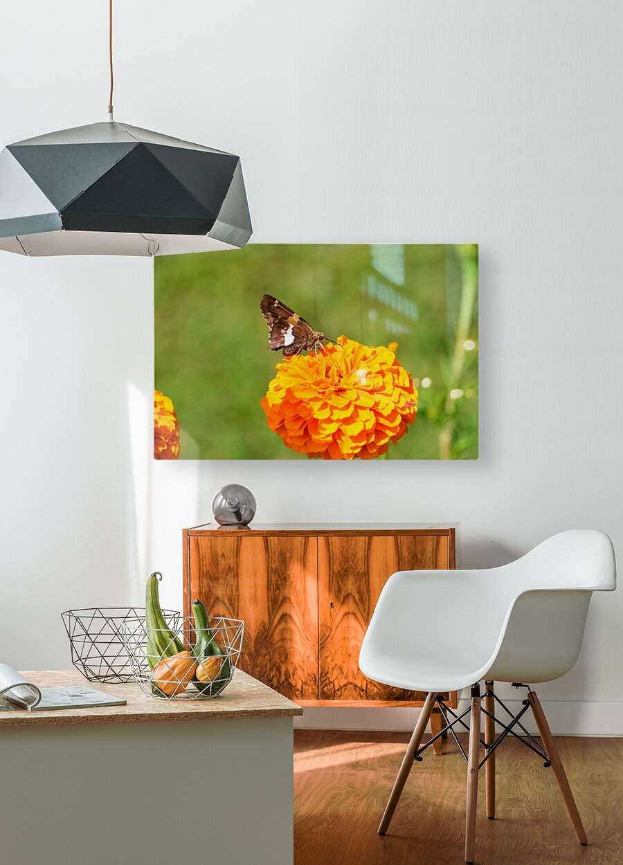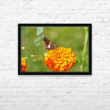 Butterflies Collection. The photo reveals a microcosmic world where a butterfly reigns over a marigold bloom like a monarch on a fiery throne. The high-definition detail of the petals and wings pulls the viewer in, challenging them to shrink their worldview and consider the silent kingdoms that live beneath our everyday gaze. The background remains comfortably blurred, allowing full attention on the natural majesty of this interaction. Perfect for those who find depth in the tiny and unseen, this piece transforms any space into a place of quiet marvel. A striking addition to a study, reading nook, or child’s bedroom, it balances the boldness of color with the softness of subject.