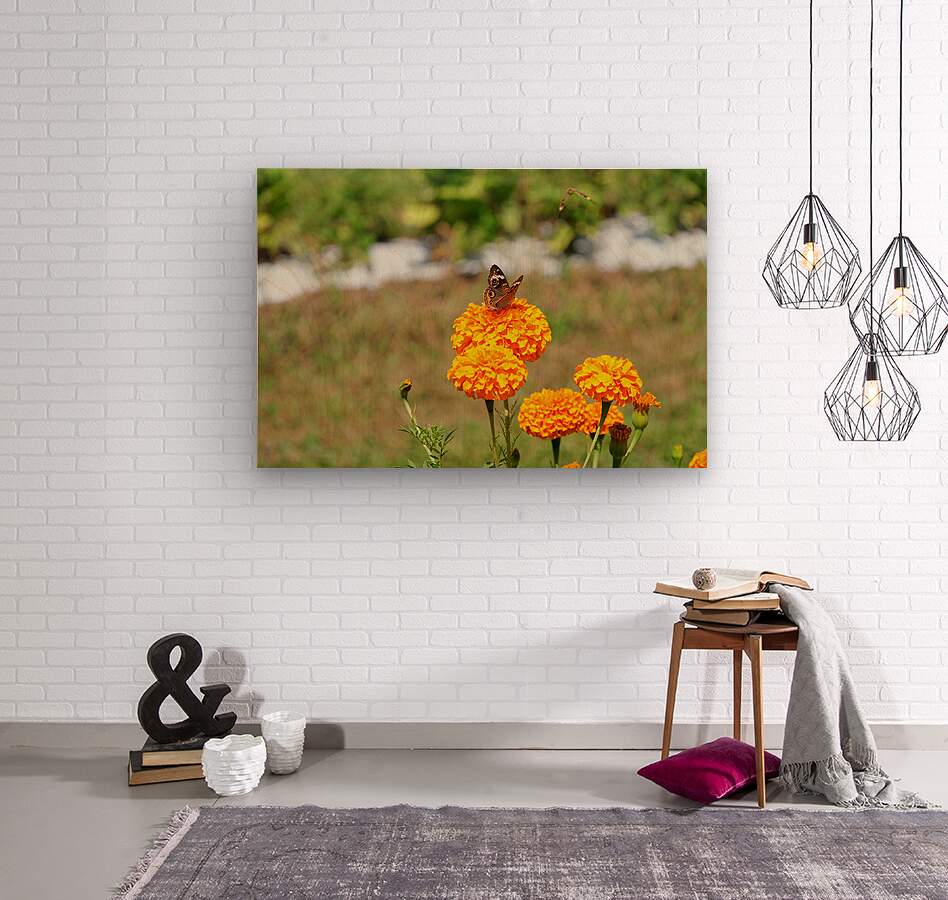 Butterflies Collection. Captured in a quiet moment, this image invites you into a sun-drenched field where the humble marigold becomes a stage for a lone butterfly’s delicate pause. The lush orange-gold hues stand in brilliant contrast against the blurred green backdrop, creating an image that is both vibrant and peaceful. The butterfly’s wings, patterned with earthy elegance, mirror the intricate textures of the marigold petals, both fleeting and eternal in their natural rhythm. As wall art, this piece evokes the fleeting nature of joy and the quiet importance of stillness. It’s a daily reminder to slow down, observe, and appreciate the micro-beauties of life. Perfect for a meditation space, hallway, or garden room, it carries warmth and poetic softness into any environment.