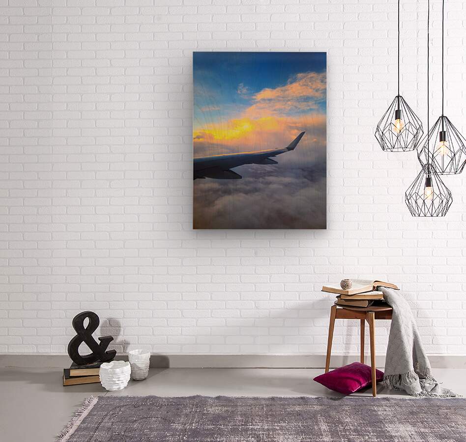 A serene, dreamlike moment above the clouds. The sky’s soft embrace and the sun’s first light create a canvas of quiet wonder, captured in a fleeting instant from the airplane’s wing. Let it be a daily reminder of the beauty that awaits just above the clouds.