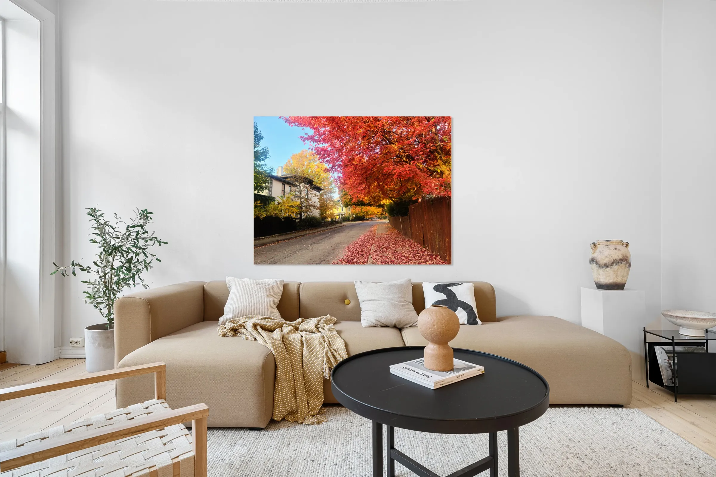 Colors of Fall Collection. Wrapped in color, this street feels like it’s being hugged by autumn itself. Autumn’s Embrace is a gentle reminder of seasonal change, of quiet streets and soft light. Perfect for anyone who longs for the comfort of fall and the quiet magic it brings.