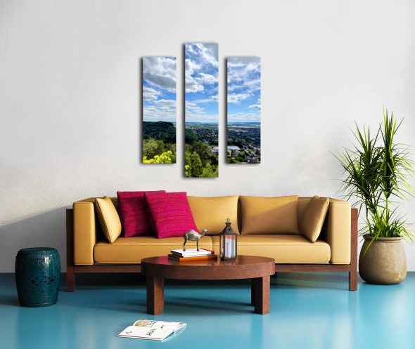 A vibrant overlook bursting with color and charm. This sun-kissed town is wrapped in greenery and scattered clouds, offering a perfect balance of structure and wild. A beautiful tribute to small-town life and the warmth of familiarity.