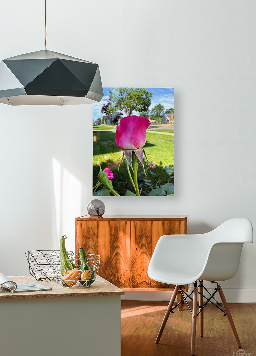 There’s power in waiting, and this rose knows it. The unopened bloom, wrapped in soft armor, waits not for attention but for the right moment. Time stands still in this frame, where light teases its form and the world waits with it. Hang this piece to celebrate patience and timing. It reminds us that everything, love, growth, beauty has its own rhythm. It pairs beautifully with calm, minimal interiors or any space where stillness is a virtue.