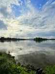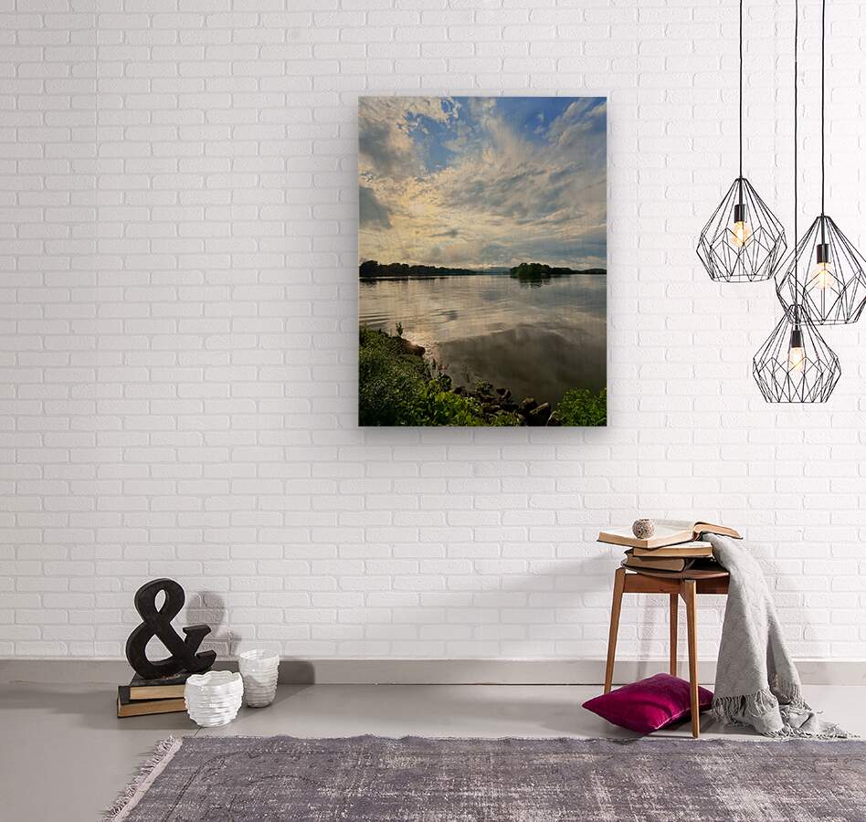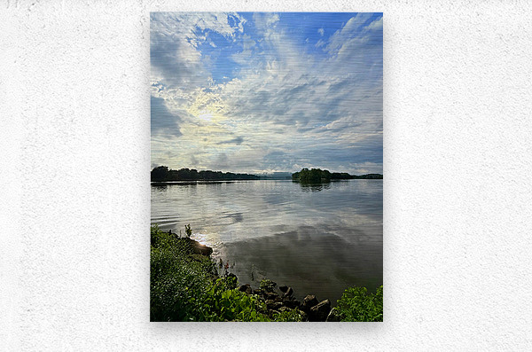 In a dance between dimensions, this image captures the mirror-like stillness of the lake reflecting the drama of the sky. Ethereal light cuts through layered clouds while the green fringe of land holds steadfast below. It’s a whispering echo chamber between earth and ether, where time briefly pauses. Perfect for contemplative spaces or creative corners, this piece embodies reflection both literal and emotional. Let it be your daily pause button, a portal to reconnect with nature’s vast calm and boundless perspective.