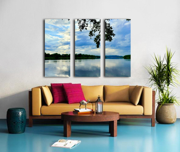 A stretch of water carries the weight of clouds above, veins of light and shade coursing between them. Trees rest at the edges, letting nature breathe in rhythmic symmetry. The sky speaks, but gently, like a lullaby only the patient hear. This piece brings a soulful balance to your space, aligning head and heart through the serene geometry of nature.