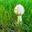 This photograph captures a solitary mushroom emerging boldly from a thick bed of vibrant green grass, basking in early sunlight. Its speckled, dome-sh...[+]