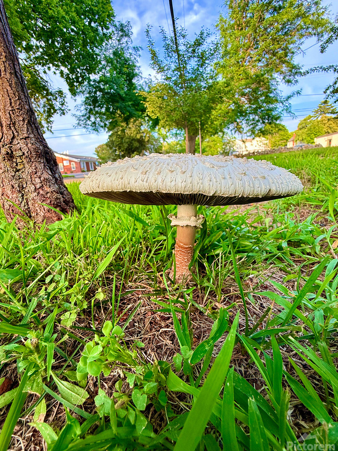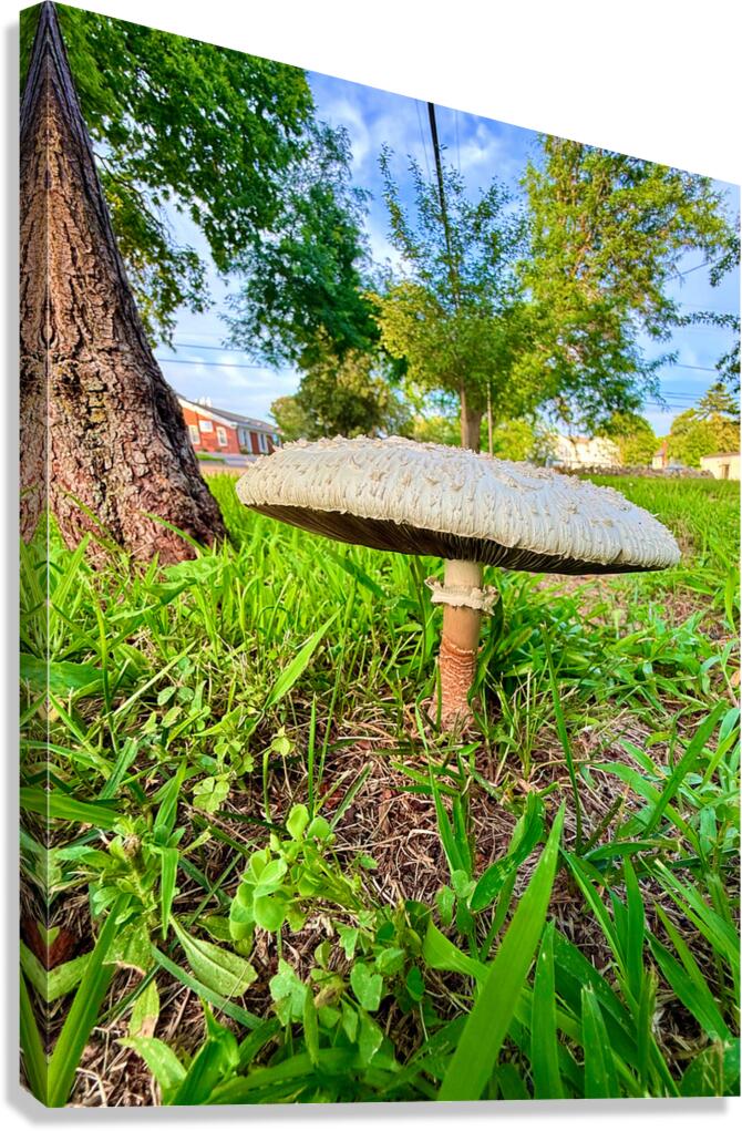 This striking close-up captures a solitary mushroom standing proudly at the base of a tree, its textured cap broad like an ancient shield. The low perspective and warm morning light create a magical atmosphere; one that blurs the boundary between real and fantastical worlds. This print symbolizes resilience and quiet dignity. As wall art, it draws you into a grounding energy, reminding us that wonder lies just beneath our feet. It brings peace and rootedness into any space, ideal for those seeking reflection, stillness, or reconnection with the natural world.