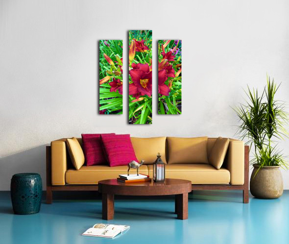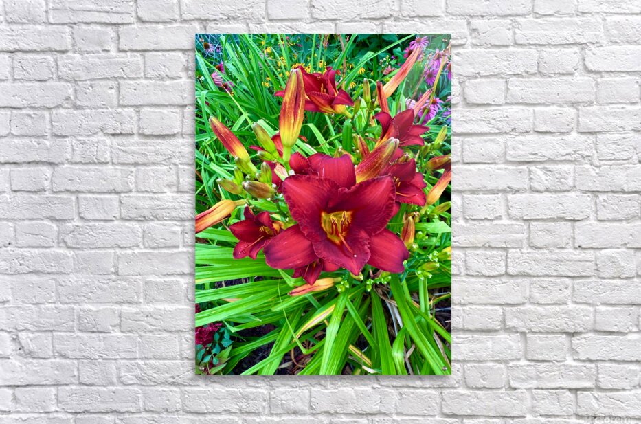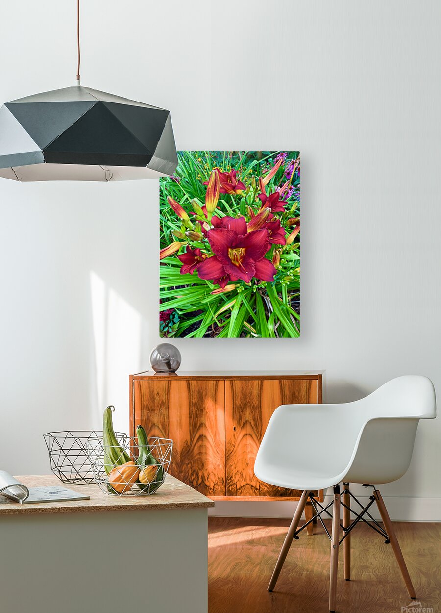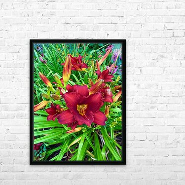 Captures that sacred transition from stillness to vitality, where light begins to stir a garden to life. The main bloom, drenched in deep scarlet tones, rises like a flame against a bed of green, its golden throat glowing with the promise of a new day. As wall art, this piece brings with it a sense of optimism and natural luxury. It radiates energy without chaos, offering a calm yet passionate accent to any room, from a serene bedroom retreat to a bold office feature wall. It is a tribute to those awakening moments in both gardens and in life itself.