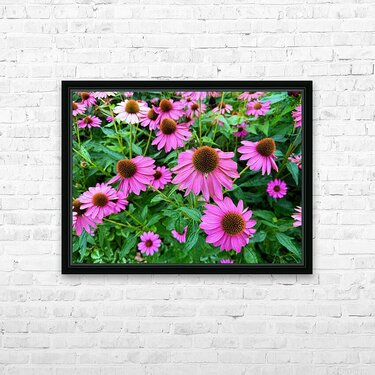 A lush, immersive portrayal of coneflowers blooming en masse, creating a dreamy landscape of pink petals and green foliage. This image radiates the joy and abundance of summer, enveloping the viewer in nature’s embrace. As a wall art piece, it brings texture and tranquility into the home, evoking the peace of a country meadow or backyard haven. Ideal for grounding wellness spaces, family rooms, or anywhere nature’s presence is desired.