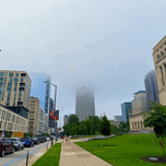 tall buildings in fog
