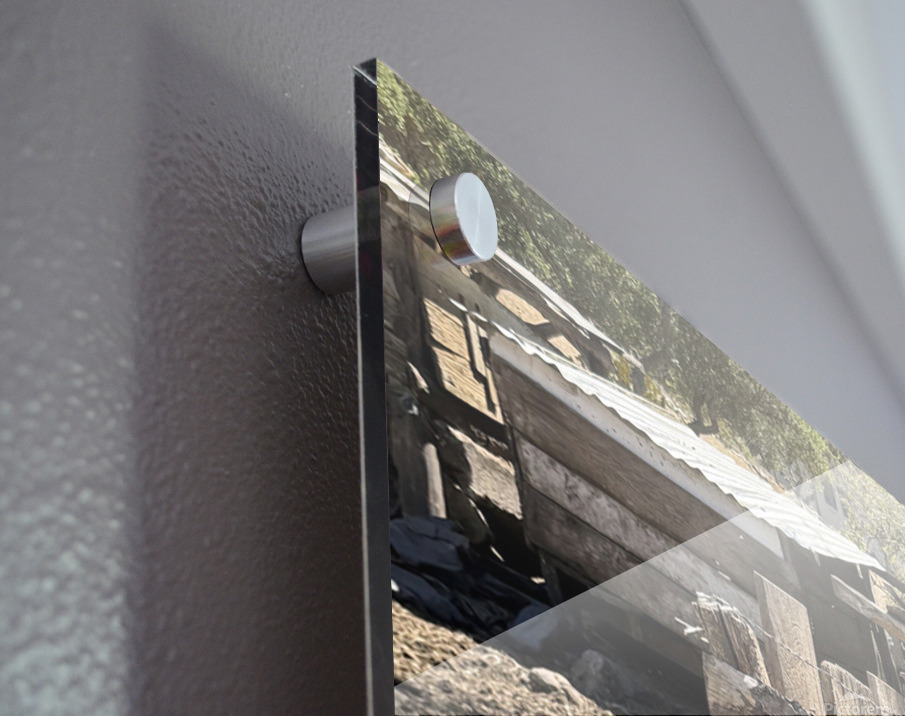 Printed to the edge - Ready to hang - provided with 4 premium polished aluminum stand off ( wall screws and mounting hardware provided )
