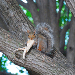 This was taken in DC park. The squirrel was munching on a chicken wing that some tourist had left.