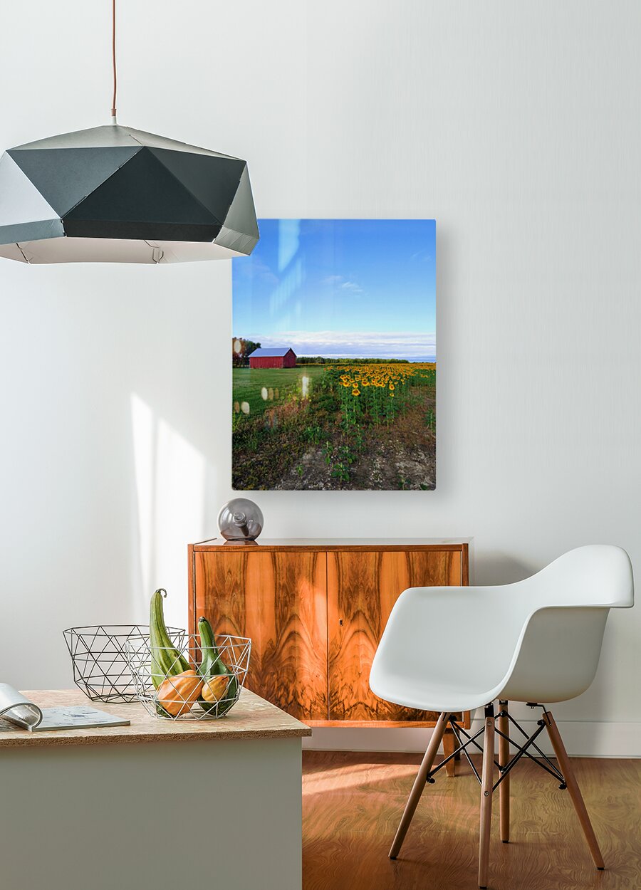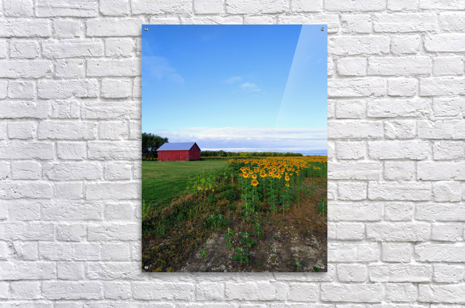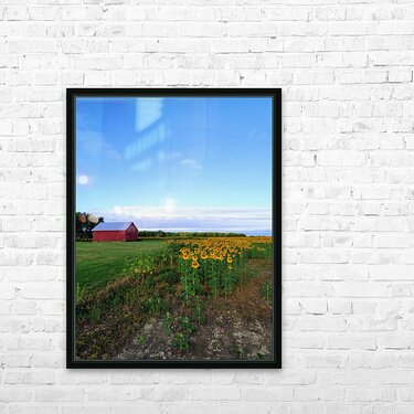 Sunflower Collection. Came across the sunflower farm on a road trip in 2023 in Indiana. The field of sunflowers was like a carpet of sunshine! In this image the loudest voice belongs to the land. This minimalist landscape invites the viewer into a moment of absolute calm a horizon bathed in sunlight, filled with rows of sunflowers, all beneath an endless blue sky. The barn, while bold in color, does not dominate but rather complements the field’s rhythm. It is a visual poem to quietude and mindfulness. As wall décor, it suits minimalist, modern, or nature-inspired interiors where space and mood matter more than detail. A meditative piece perfect for bedrooms, yoga studios, or anywhere peace is prized.