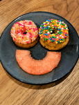 An image that captures the sweet side of optimism, this food arrangement brings a smile to your wall, literally. With two delightfully topped donuts f...[+]