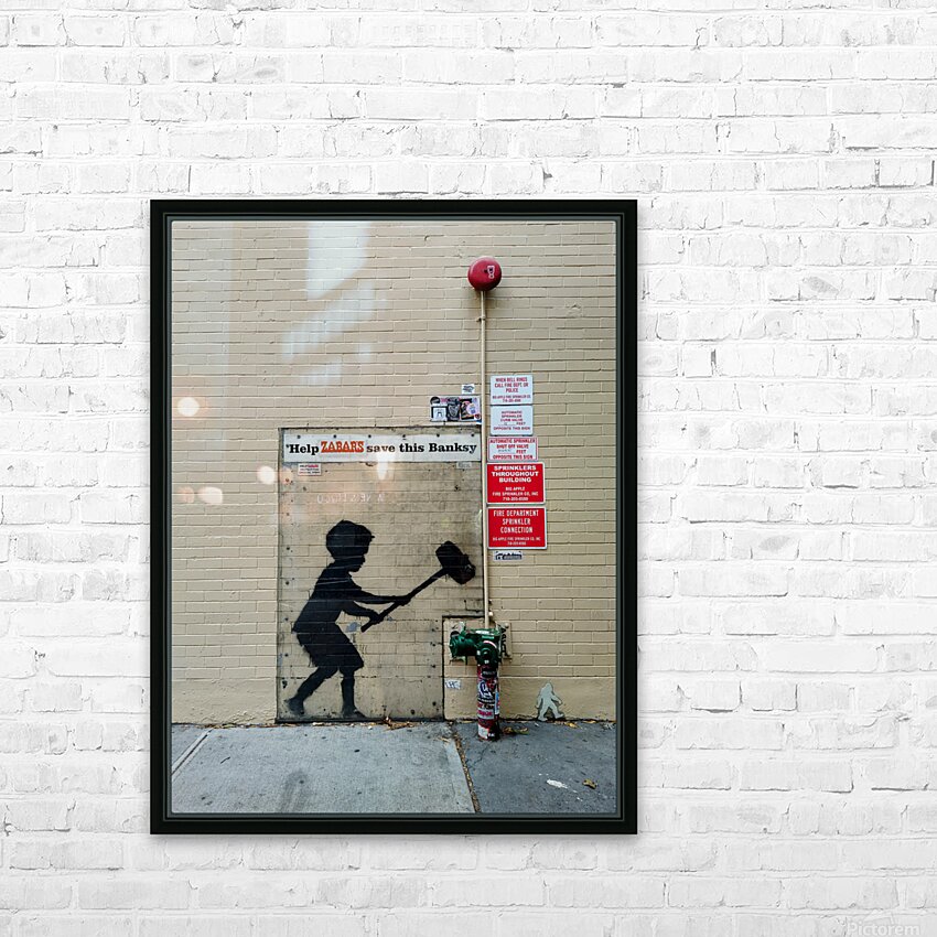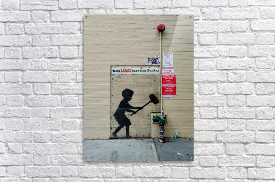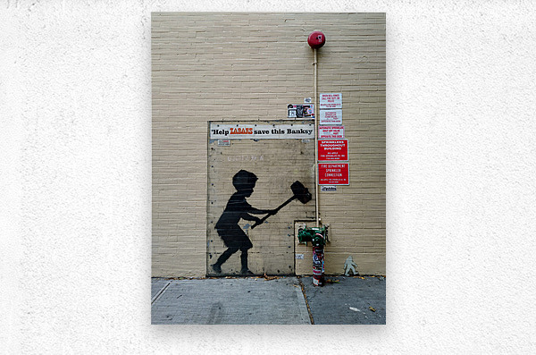 Get this artwork "Banksy on Broadway Boy Hammering Hydrant" in a framed print.