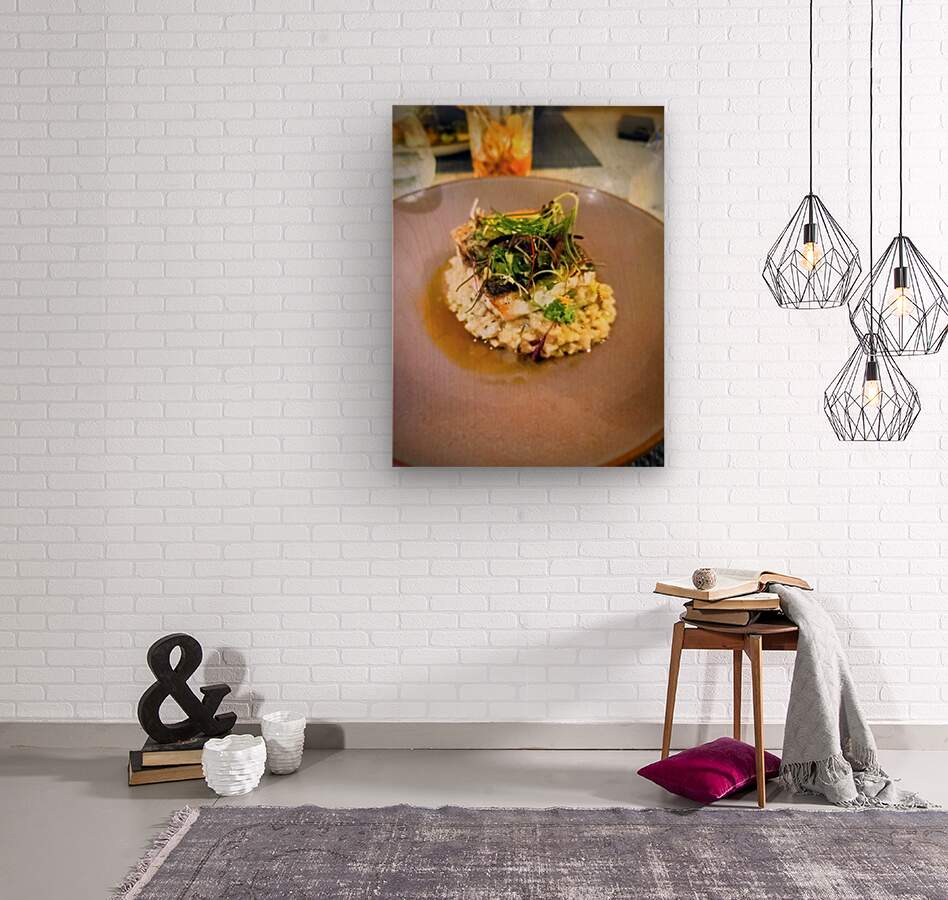 This delicious seabass on top of a risotto dish was served at the Tidal Restaurant in San Diego at the Paradise Point Resort & Spa. This visually rich piece captures the poetic essence of modern gastronomy: a delicately seared sea bass fillet perched atop a creamy, well-tempered risotto, garnished with a vibrant confetti of microgreens. The dish, served at Tidal, is not merely food, it’s an homage to balance and detail.A tribute to restraint, harmony, and the beautiful silence of exceptional taste. As wall art, it evokes memory, atmosphere, and sensory intimacy. It is a visual cue to slow down, to recognize the artistry in everyday rituals like meals, and to honor the invisible effort behind moments of perfection. Ideal for modern kitchens, dining spaces, or boutique culinary studios, this piece grounds a space in elegance and calm. It speaks to lovers of craft, of intentionality, and of living life in delicious detail.