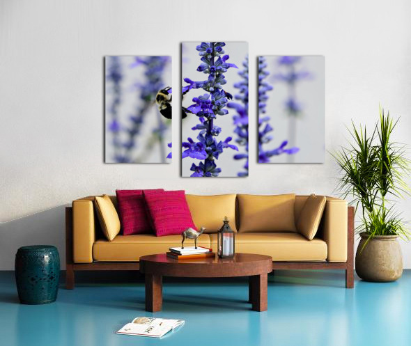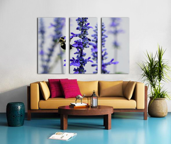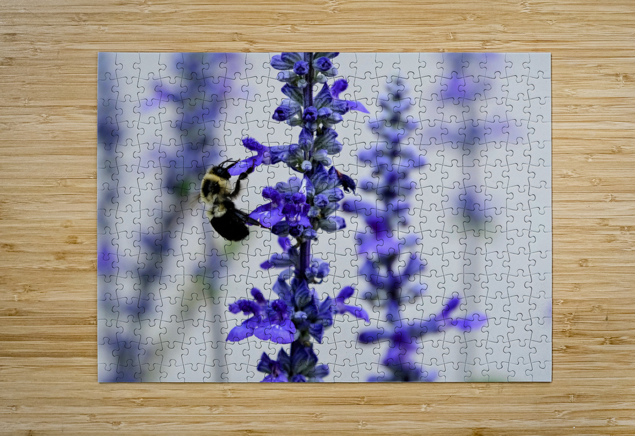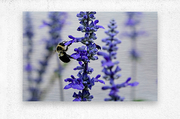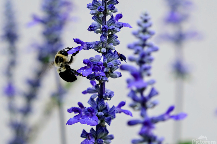 The Bee Collection.A simple and striking photo of a bee visiting tall violet salvia flowers. The contrast of dark and light, stillness and motion, makes this a unique snapshot of everyday wonder. This print invites calm and appreciation for nature’s details. It works well in quiet spaces like reading rooms, bedrooms, or studios, bringing a peaceful energy to the space.