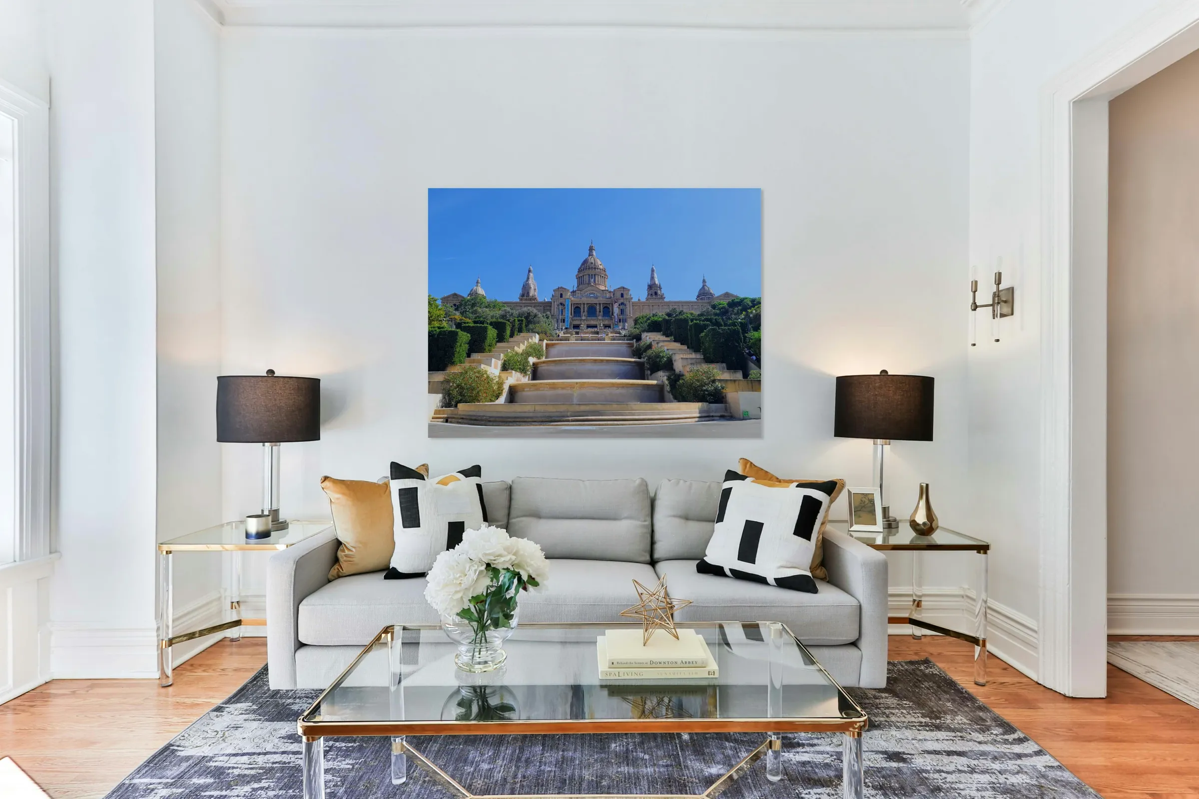 Bathed in sunlight, the golden steps leading to the Palau Nacional mimic a stairway to the past. This isn't just architecture it’s a timeline carved in stone. With cloudless blue skies cradling its domes, this structure reminds us that cultural excellence can be as awe-inspiring as nature. A slow climb into beauty. A snapshot of eternal Europe. For wall décor that evokes refined travel, educational depth, and architectural love, this piece is a window into another world. It radiates a historic calm and golden aspiration that uplifts every space from a formal dining room to a bright hallway or a cultural café wall.