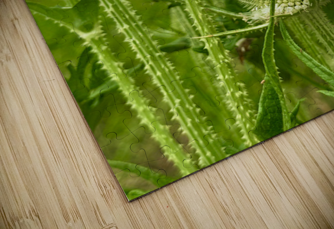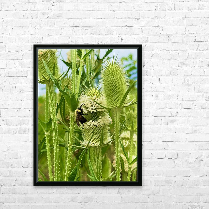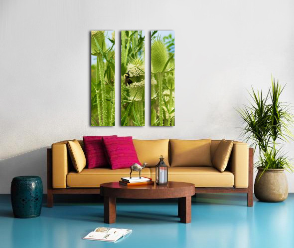 An evocative snapshot of raw nature at work, this photograph shows a bee drawn into a cluster of pale flowers, surrounded by the teasel’s architectural spikes. A conversation starter and a peaceful focal point, this image suits both homes and workplaces.