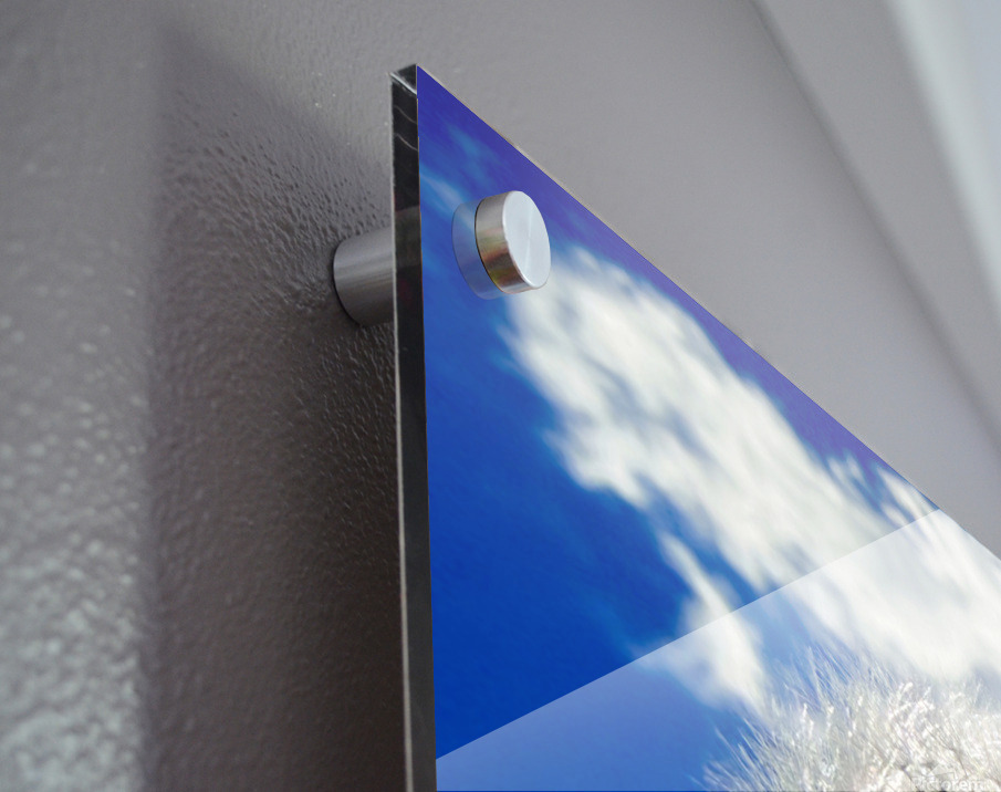 Impression sur acrylique avec entretoises ( cylindres métalliques )