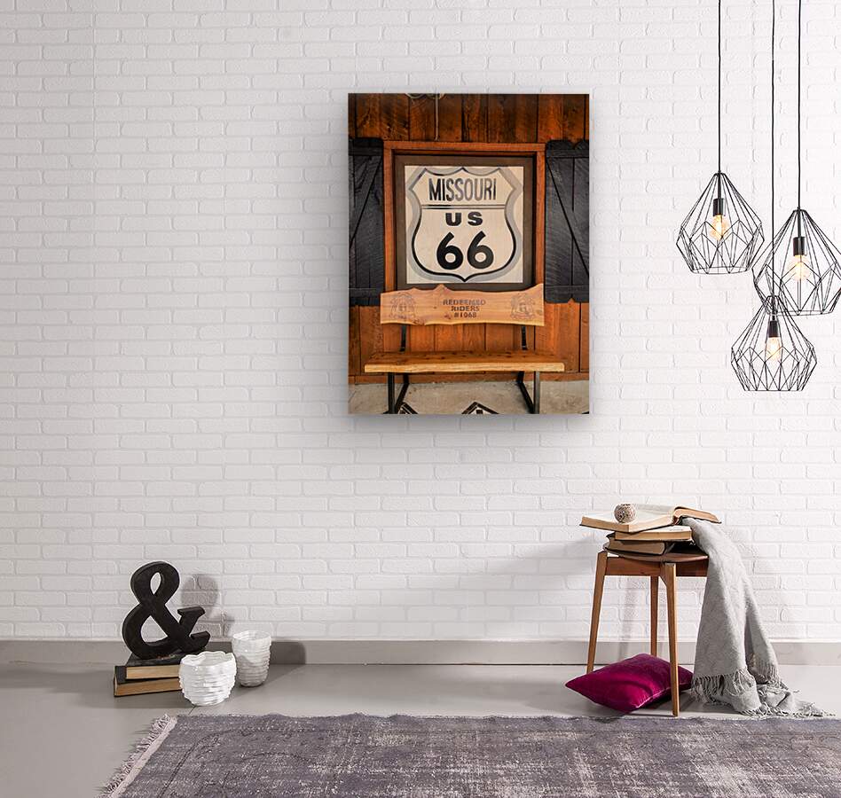 Driving to Dallas from the Midwest and came across this stop at a restaurant called Missouri Hick BBQ. This sign was at the entrance and captures the spirit of road trips. Route 66 Collection. This image showcases a framed Missouri US 66 highway sign with a handcrafted bench beneath, a scene that embodies the warmth of American heritage. The textures of wood and signage, together with subtle religious hints from the “Redeemed Riders,” make this a meaningful addition to both modern and traditional decor styles.